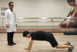 双手撑地,保持背部直立,收紧腹部,勿闭气,双腿的轮流蹬踏保持节奏,抬腿20次为一组,做2组。动作如下图: