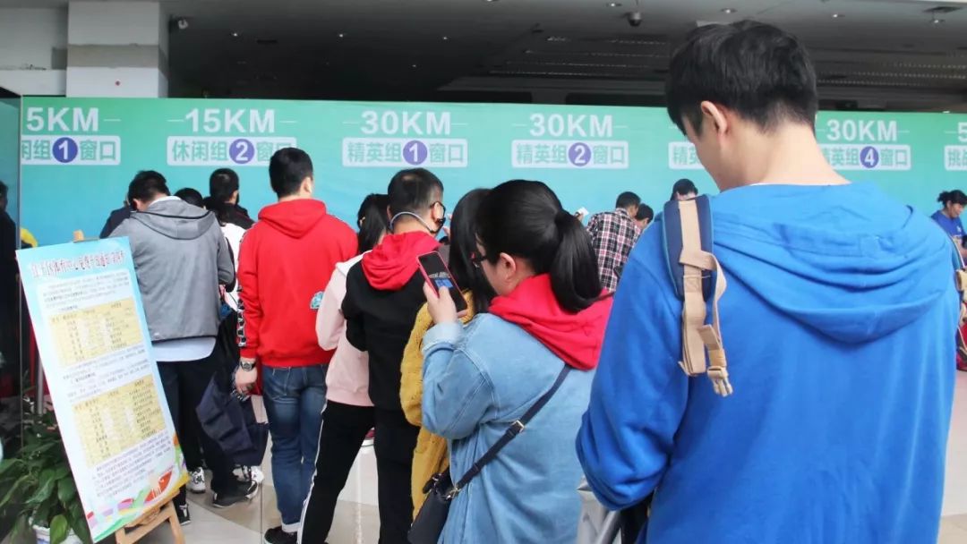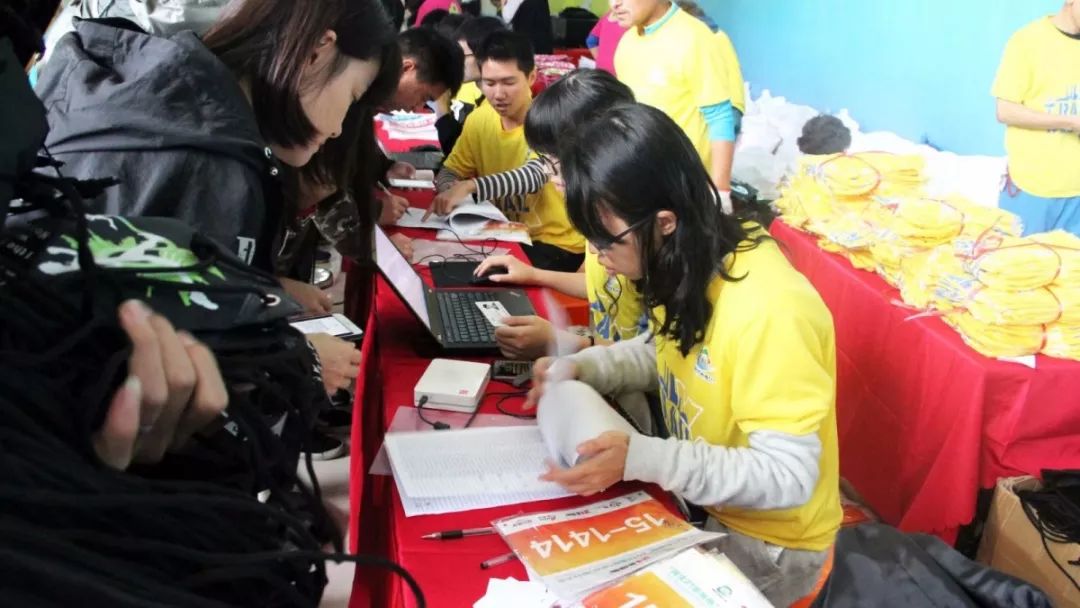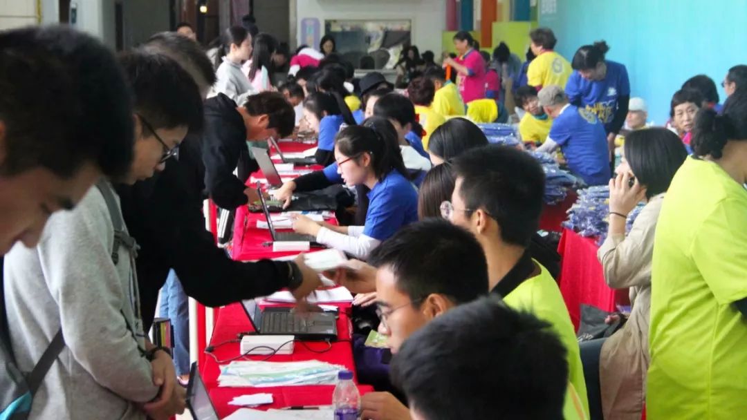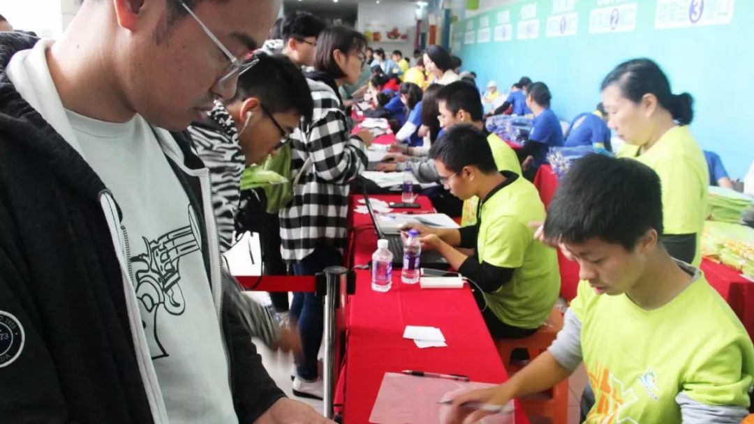 现场偶尔也有迷糊的毅行者跑错了窗口,还不解为什么一样的组别却不是每个窗口都可以领取,在工作人员耐心的解释、指引下,这些毅行者也很快领到了自己的参赛装备。