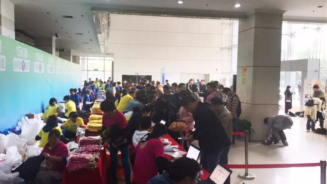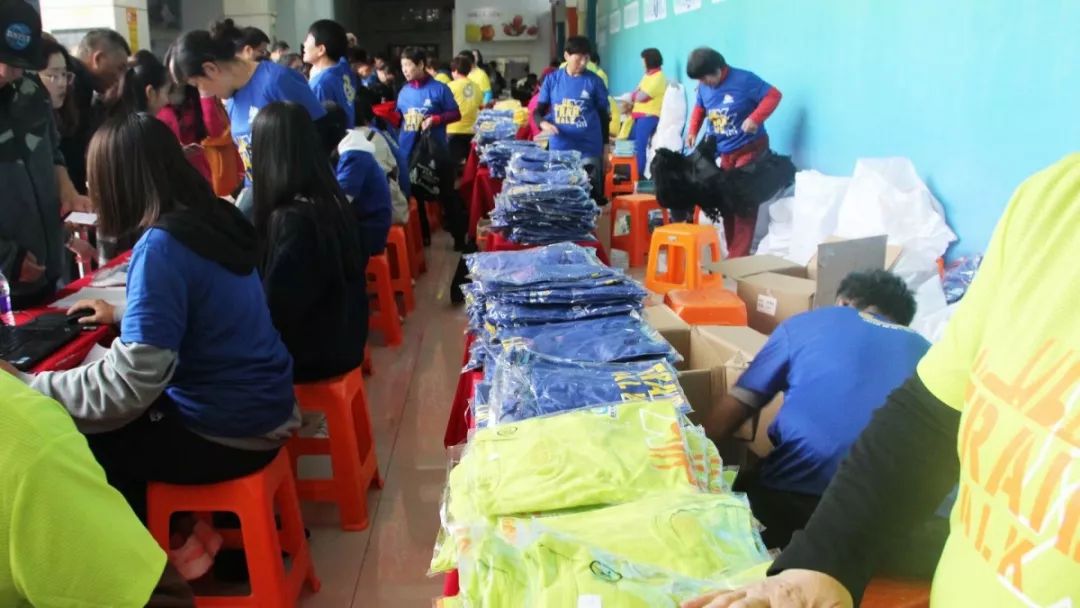 参赛装备发放现场秩序井然,为毅行者点赞!工作人员有条不紊的各司其职,毅行者们在各自的窗口前排队等待到领取参赛装备,整个流程方便快捷。