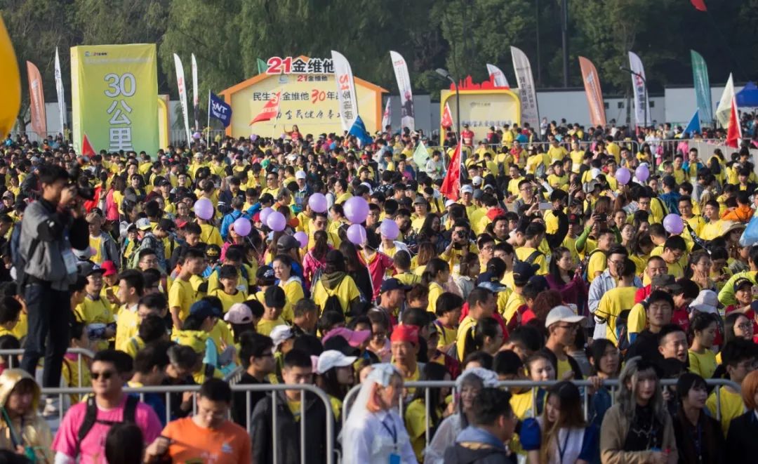 11月3日,周六,杭城下着雨,整个城市笼罩在迷蒙的烟雨中,有一种诗意的美。因为天气的原因,街上的行人不多,但江干体育中心全民健身活动中心一楼大厅却很热闹,“民生21金维他”2018国际(杭州)毅行大会组委会在此发放参赛装备。截止到下午5点,后台的数据显示,一共有5338人领取了自己的参赛装备。