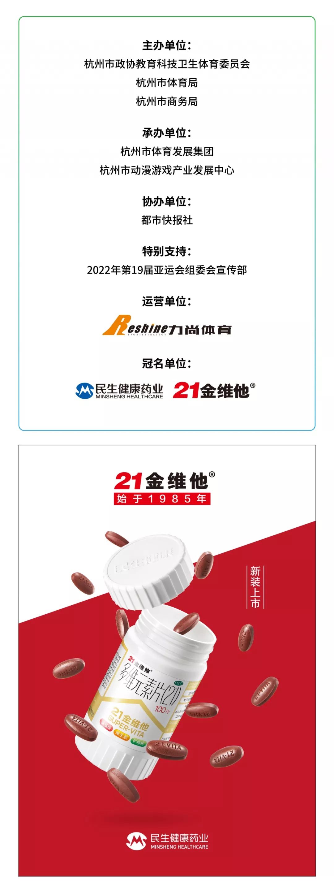 民生医药自2016年开始,连续第四年冠名国际(杭州)毅行大会。今年继续推出民生集团拳头产品“21金维他”冠名本届国际(杭州)毅行大会。民生医药继续发挥企业力量与组委会携手推动健康和运动成为全民潮流。